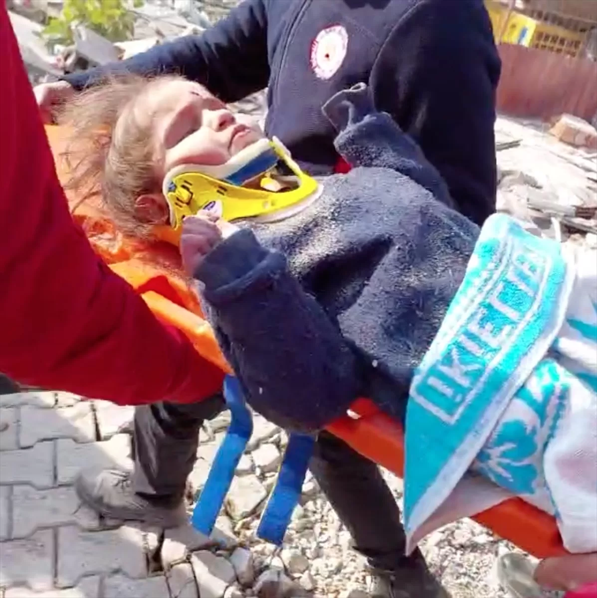 Koca, sosyal medya hesabından, depremin en çok etkilediği illerden Hatay'da, müftülüğün yanındaki bir binanın enkazından ekiplerin kurtardığı kız çocuğunun görüntülerini paylaştı.
