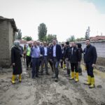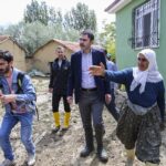Kızılkoyunlu Mahalle Muhtarı ve köylülerle sel nedeniyle yıkılan kerpiç evleri ve ahırları inceleyen Kurum, vatandaşların taleplerini dinledi.