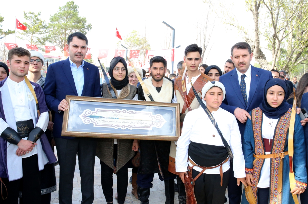 Atlı okçuluk ekibinin sunduğu gösterileri de izleyen Kurum'a, Kangal köpeği yavrusu hediye edildi.