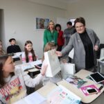 Çocuklara sarılan, oyuncak hediye eden ve onlarla pasta kesen Yanık, yaşça büyük çocukların Türkçe dil eğitimi gördüğü sınıfı da ziyaret etti.