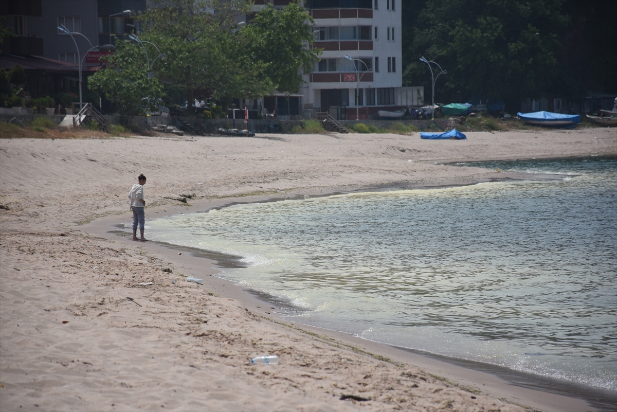 Kıyıda sarı renge dönüşen deniz suyunun kirliliğini görenler durumu Çevre Şehircilik ve İklim Değişikliği Müdürlüğü ekiplerine bildirdi.
