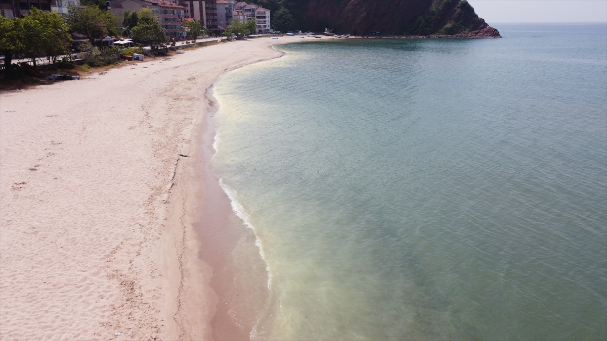 Çakraz'da yaklaşık 1 kilometre uzunluğundaki sahilde sabah saatlerinde renk değişimi görüldü.