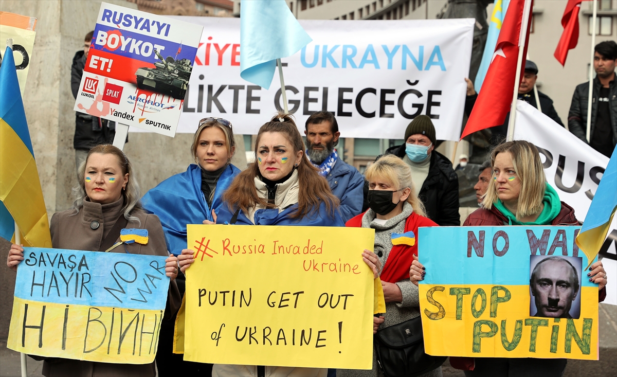 ANKARA (AA) – Başkentte yaşayan Ukrayna vatandaşları ile Kırım Türkleri Kültür ve Yardımlaşma Derneği mensupları, Rusya'nın Ukrayna'ya yönelik saldırılarını protesto etti.