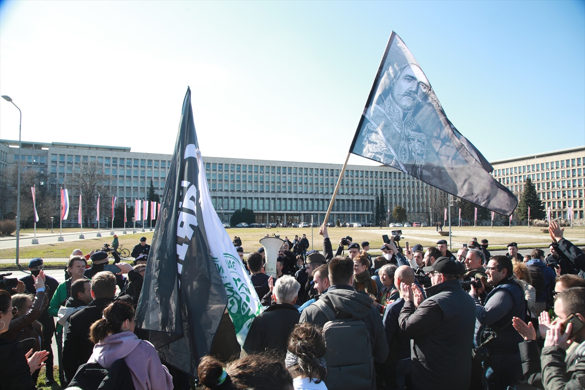 Sırbistan Cumhurbaşkanı Aleksandar Vucic’in, Devlet Günü vesilesiyle madalya dağıttığı sırada, Cumhurbaşkanlığı binasının çevresi protestocular tarafından 2 saat boyunca trafiğe kapatıldı.