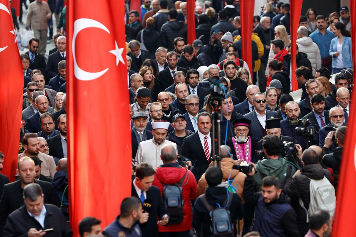 İSTANBUL (AA) – Beyoğlu Belediyesi, dini liderler ve 39 ülkenin başkonsolosu İstiklal Caddesi'nde birlik ve beraberlik yürüyüşü düzenledi.