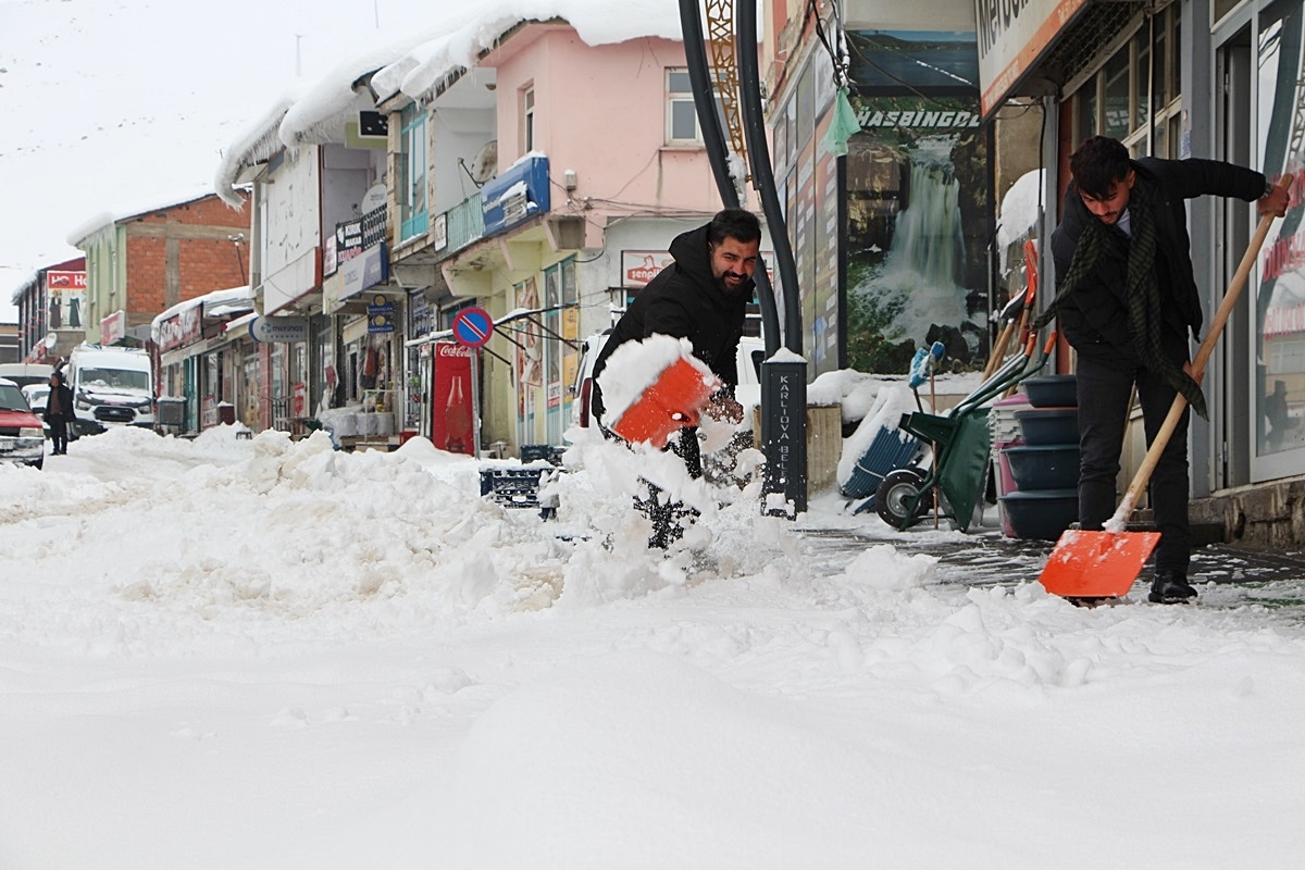Kar kalınlığının 1 metreye kadar ulaştığı, eğitime dün ve bugün ara verilen ilçede, bazı tek katlı evler ile araçlar kara gömüldü.