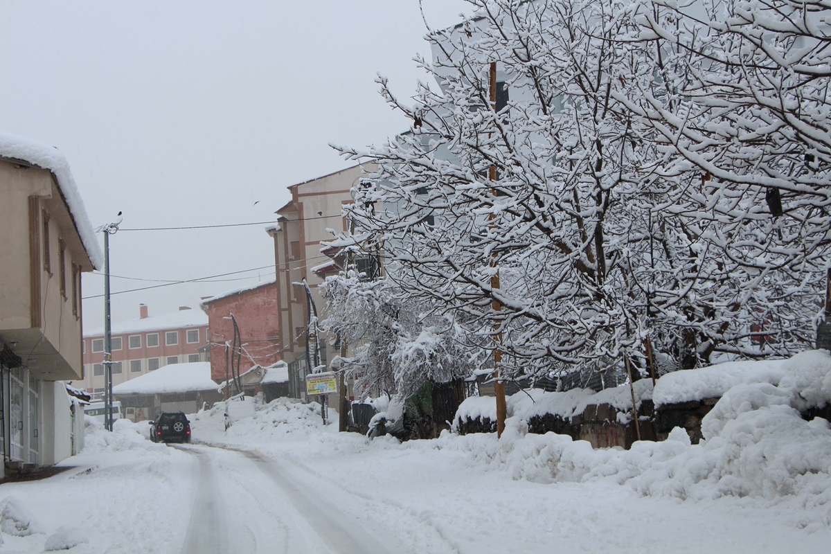 Ekipler, kar kalınlığının yer yer 30 santimetreyi bulduğu bölgede kapanan yolları açmak için iş makineleri ile çalışmalarını sürdürüyor.