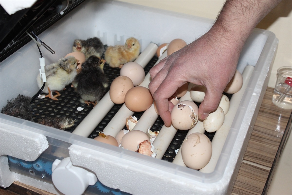 Kılınç, bu yöntemin başarılı olmasının ardından okula yeni alınan kuluçka makinesi ile tavuk ve bıldırcın yumurtası ile mavi yumurta üretti.