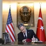 Daha sonra Büyükelçilikte oluşturulan taziye defterini imzalayan Blinken, yazısında "Şahsım ve Amerikan halkı adına, yaşadıkları büyük kayıptan dolayı Türkiye halkına taziyelerimi iletiyorum. ABD, bugün ve gelecekte müttefikimiz ve dostumuz Türkiye'nin yanındadır. Birlikte yeninden inşa edeceğiz." ifadelerine yer verdi.