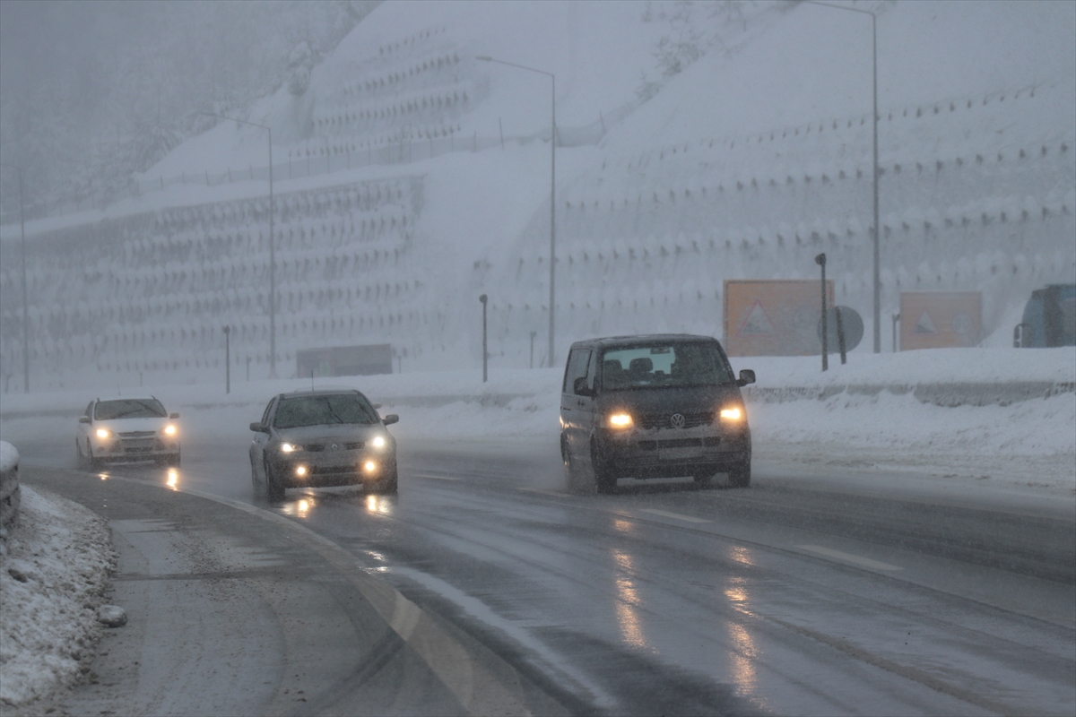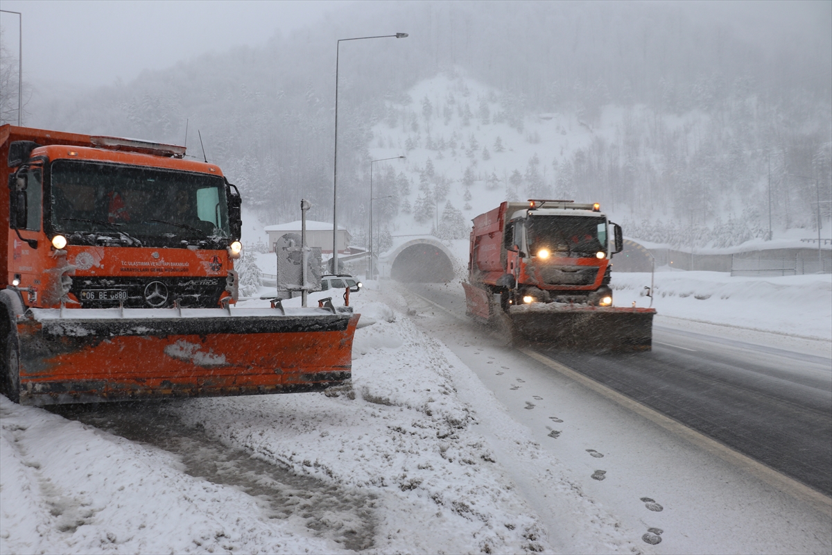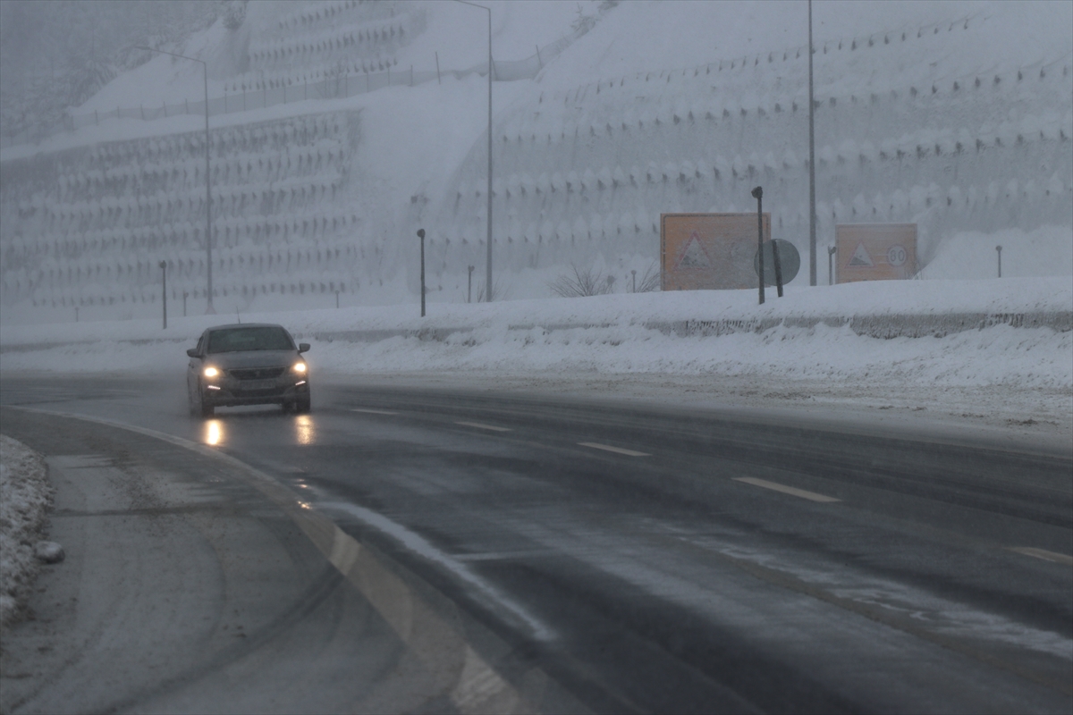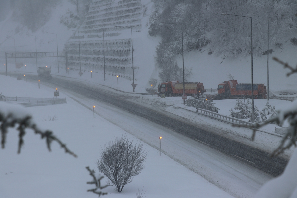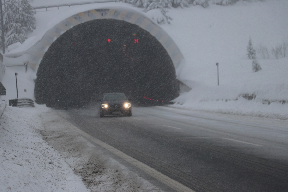 Yoğun karın etkili olduğu Anadolu Otoyolu'nun Bolu Dağı Tüneli kesiminde de ulaşım normal olarak sağlanıyor.