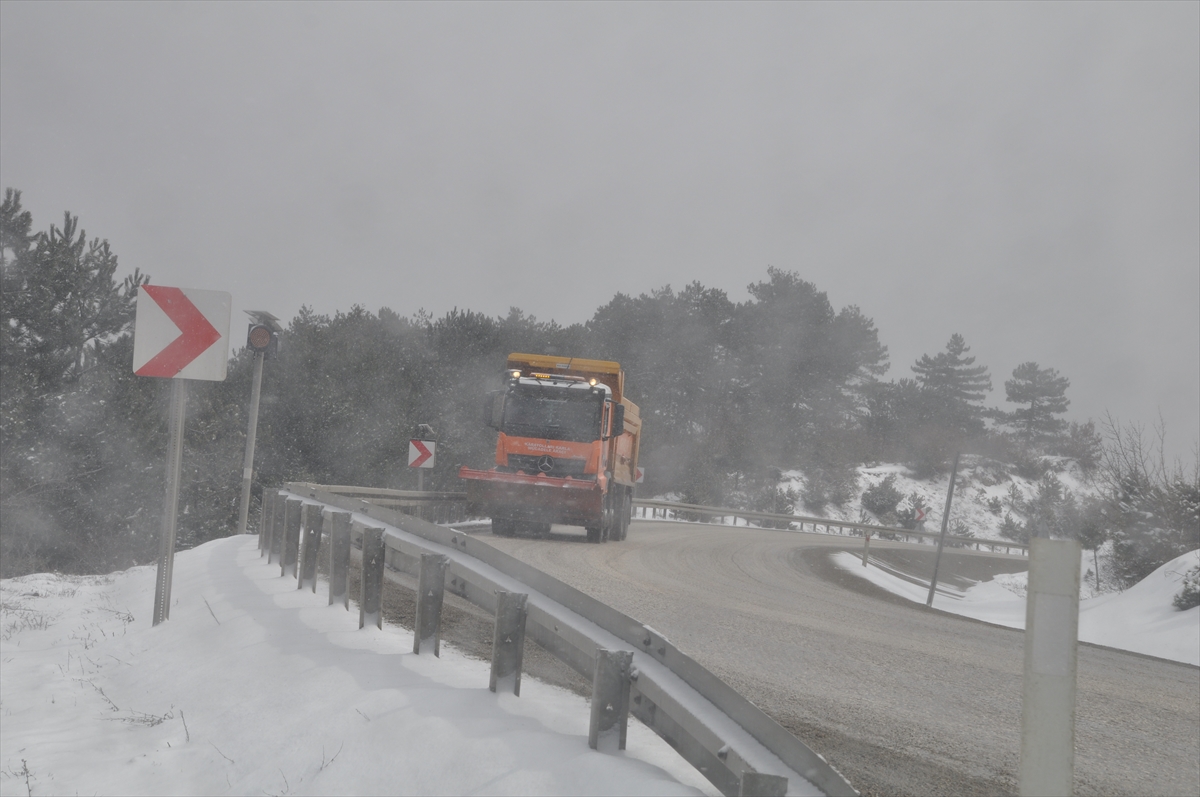Karayolları ekipleri yolda kar küreme ve tuzlama çalışmalarına devam ediyor.