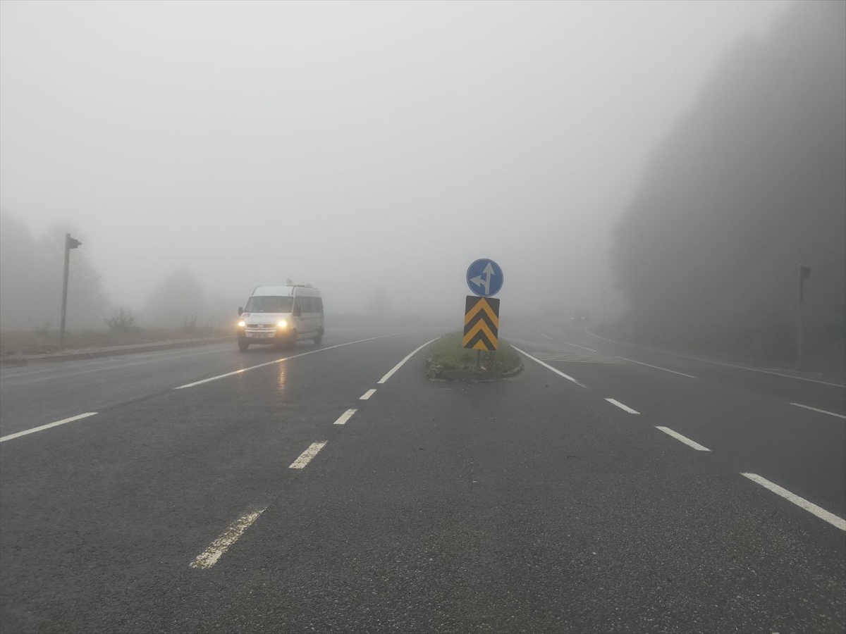 Yağışın da etkili olduğu bölgede görevliler, sürücüleri sis farları açık ve dikkatli seyretmeleri konusunda uyarıyor.