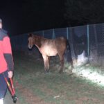 Veteriner beklendiği sırada at, ayağındaki yaklaşık 2 metre uzunluğundaki telle ormanlık alana kaçtı.