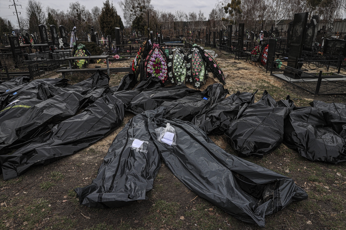 BUÇA (AA) – Ukrayna’nın başkenti Kiev bölgesinde yer alan Buça şehrindeki toplu mezarlarda bulunan ve Rus askerleri tarafından öldürüldüğü iddia edilen sivillerin cesetleri, mezardan çıkarılarak kimlik tespiti ve inceleme için adli tıp kurumlarına gönderiliyor.