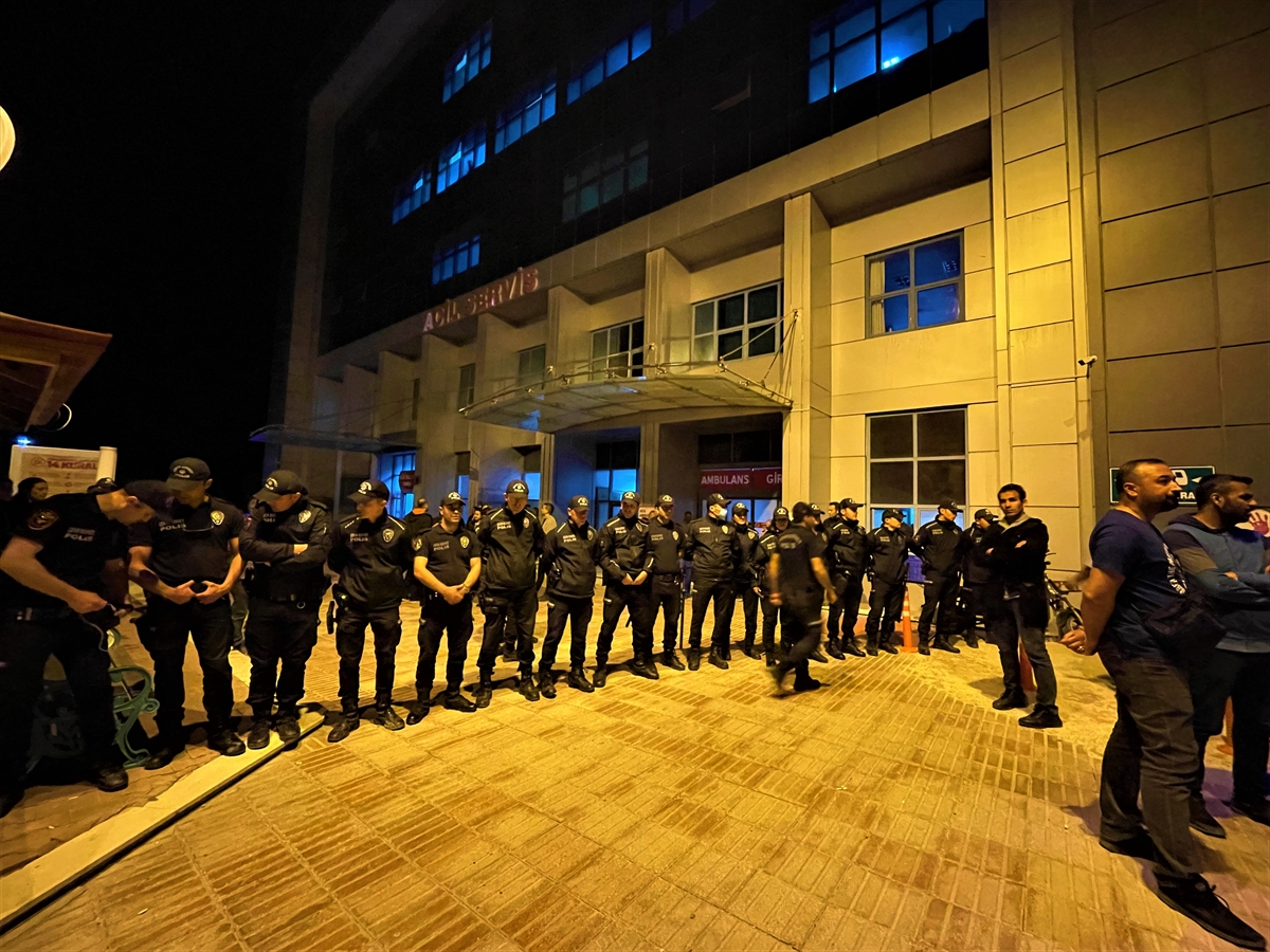 Polis ve jandarma ekipleri cesetlerin bulunduğu hastaneler önünde güvenlik önlemi aldı.