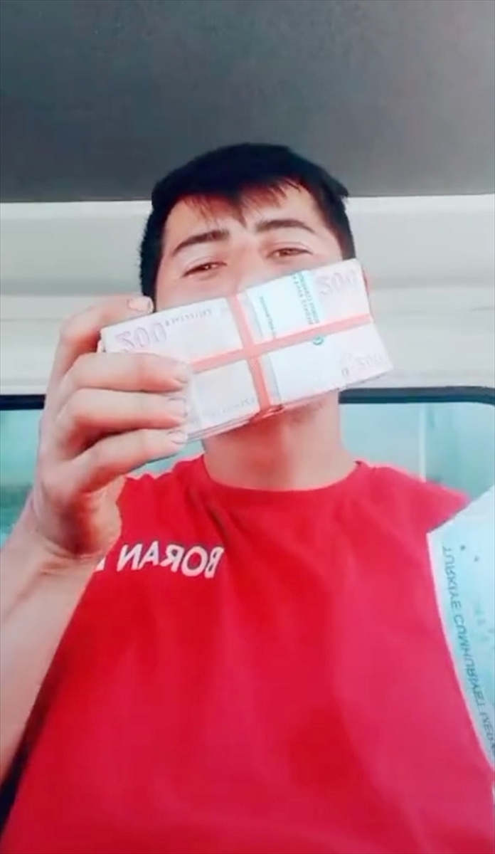 Jandarmanın çalışması devam ederken Tavas'ta yaşayan bir kişi, A.B.K'nin (24) sosyal medya hesabından iki deste halinde parayla çekilmiş video paylaşımını güvenlik güçlerine bildirdi.
