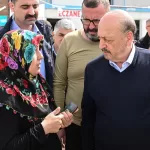 Vatandaşların sorun ve taleplerini dinleyen Bilgin ve Atalay, kadın depremzedelerin 8 Mart Dünya Kadınlar Günü'nü kutladı, hediye takdim etti.