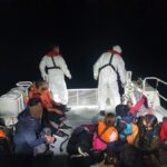 Bölgeye giden ekipler, Yunan unsurlarınca Türk kara sularına itilen farklı ülkelere mensup 20 düzensiz göçmeni kurtardı.