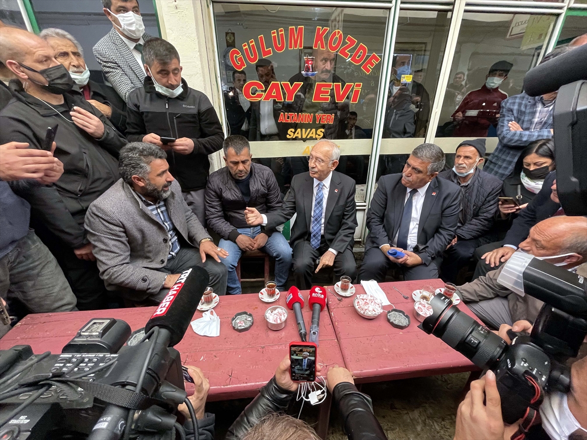 Ortakapı Mahallesi Kasaplar Hali Sokak'taki esnafı ziyaret eden Kılıçdaroğlu, buradaki bir çay ocağında vatandaşlarla oturup çay içti.
