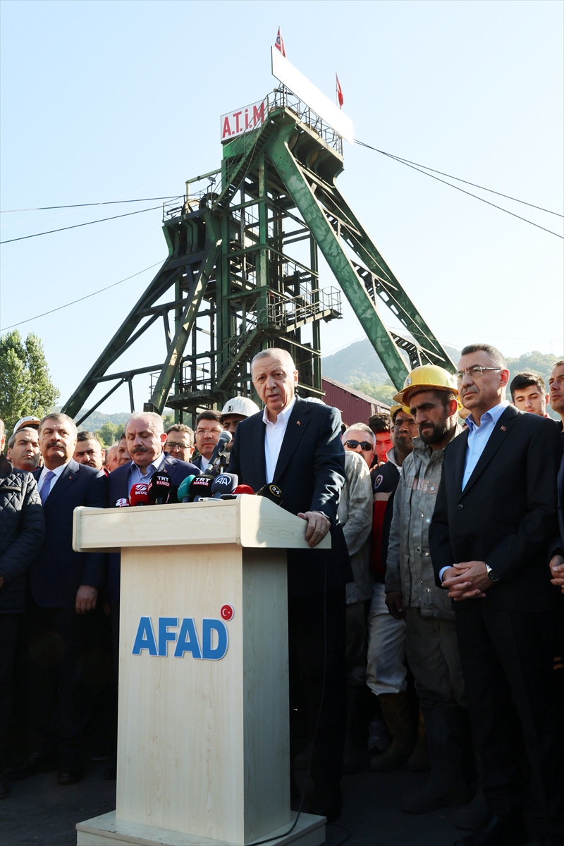 ANKARA (AA) – Cumhurbaşkanı Recep Tayyip Erdoğan, dün meydana gelen patlama sonucu 40 işçinin hayatını kaybettiği Türkiye Taşkömürü Kurumu Amasra Müessesesi'ne ait maden ocağında incelemelerde bulundu.