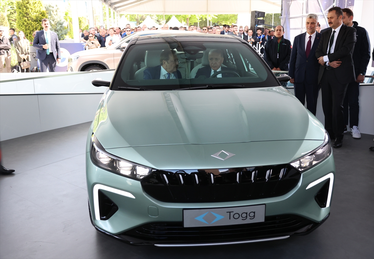 Burada, Togg’un yeni modeli T10F’yi inceleyerek yetkililerden bilgi alan Erdoğan’a, TOBB Başkanı Rifat Hisarcıklıoğlu, Çalışma ve Sosyal Güvenlik Bakanı Vedat Işıkhan, Sanayi ve Teknoloji Bakanı Mehmet Fatih Kacır, Tarım ve Orman Bakanı İbrahim Yumaklı ile Ticaret Bakanı Ömer Bolat eşlik etti.