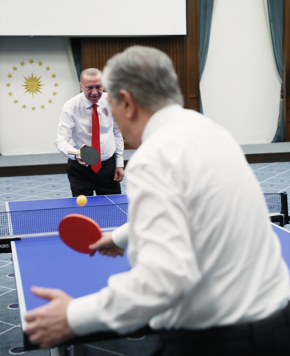 ANKARA (AA) – Cumhurbaşkanı Recep Tayyip Erdoğan ve Kazakistan Cumhurbaşkanı Kasım Cömert Tokayev masa tenisi oynadı.