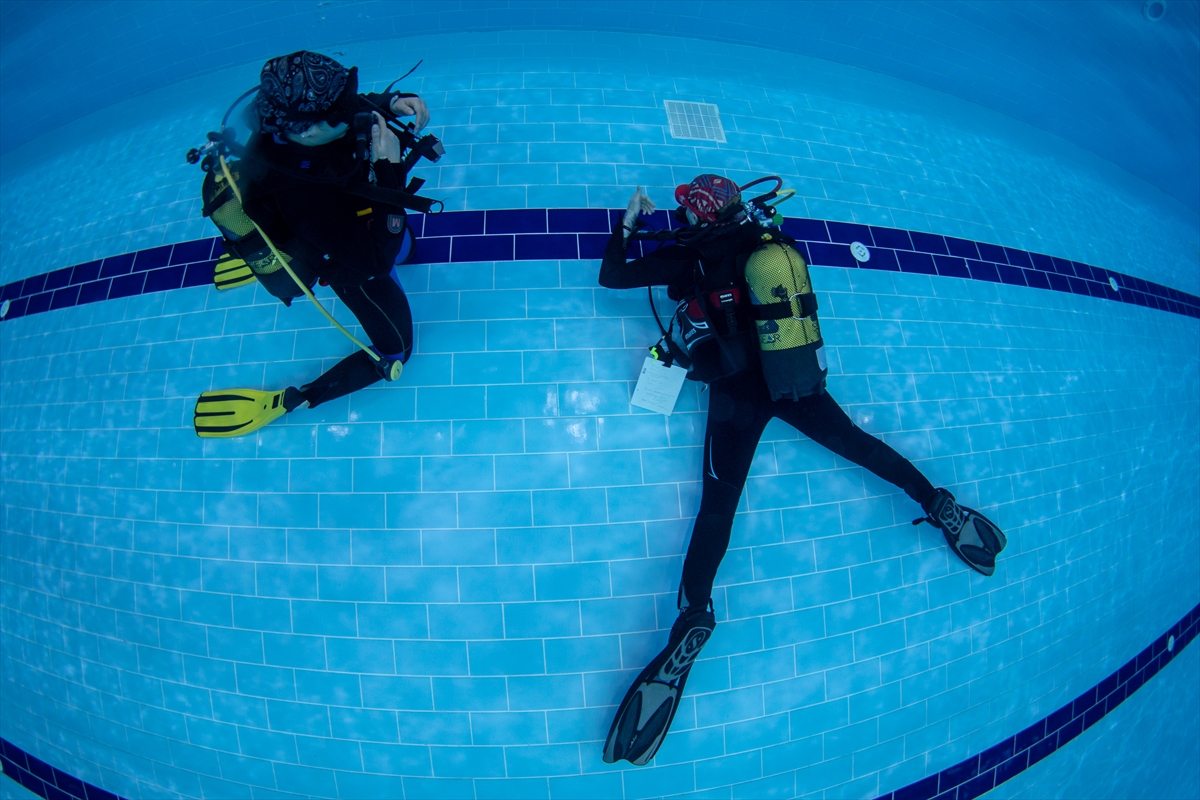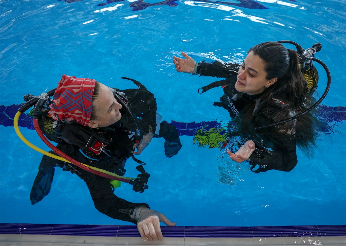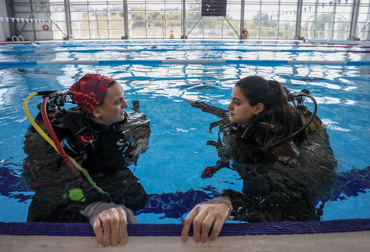 Kadın eğitmenler de özel su altı sporları merkezleri bünyesinde, havuzlarda ve denizde dalış öğrenmek isteyenlere kurs veriyor.