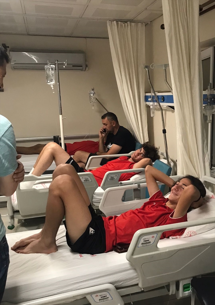 Antalya ekibinden 15 futbolcu ile 2 antrenör, öğle yemeğinin ardından karın ağrısı şikayetiyle Denizli Devlet Hastanesine gitti.