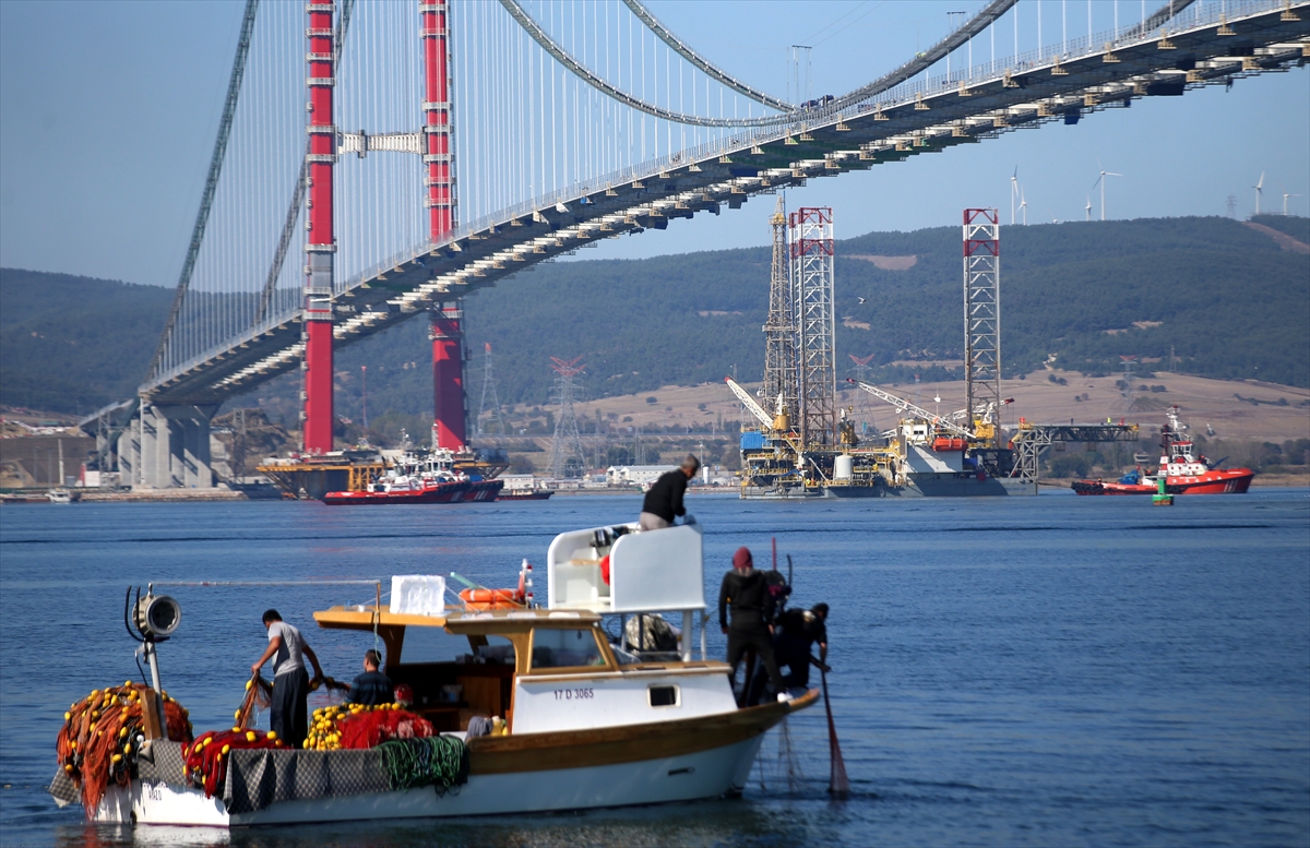 ÇANAKKALE (AA) – BOTAŞ Genel Müdürlüğü uhdesinde yürütülen "Kuzey Marmara Doğalgaz Depolama Tevsi (Faz 3) Projesi İkmal İnşaatı"nda kullanılacak, “Aras Diriller” isimli platform, suya batırılma işleminin ardından Nene Hatun römorkörü tarafından çekilerek, “1915 Çanakkale Köprüsü”nün altından geçirildi.