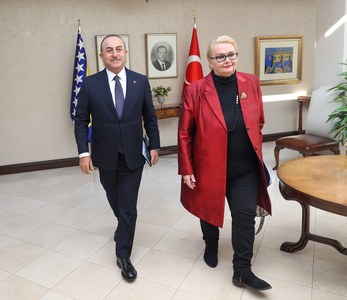 Çavuşoğlu, Bosna-Hersek Bakanlar Konseyi Başkan Yardımcısı ve Dışişleri Bakanı Bisera Turkoviç ile Dışişleri Bakanlığındaki görüşmesinin ardından düzenlenen ortak basın toplantısında konuştu.