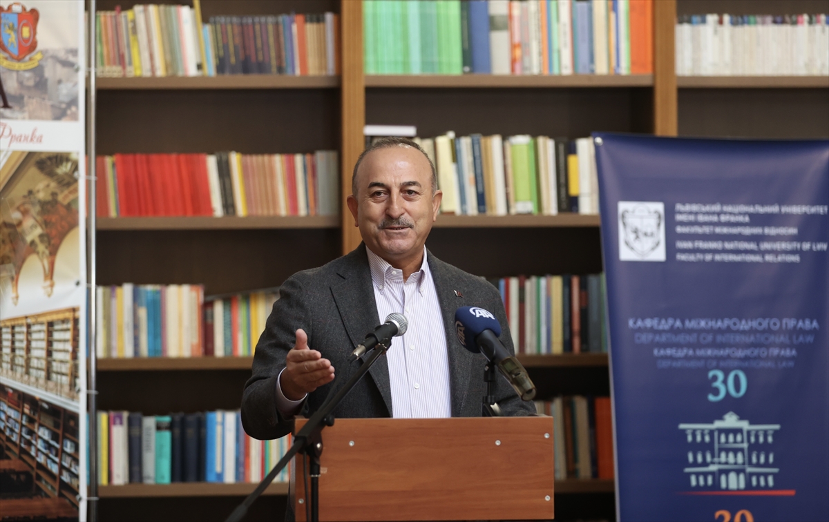 Çavuşoğlu, Ukrayna Dışişleri Bakanı Dmitro Kuleba'yla birlikte Lviv Ulusal İvan Franko Üniversitesinde düzenlenen "Modern Trendlerin Ön Saflarında Diplomasi: Uluslararası Diplomasiye Yeni Bir İçerik Kazandırmak" adlı panelde konuştu.