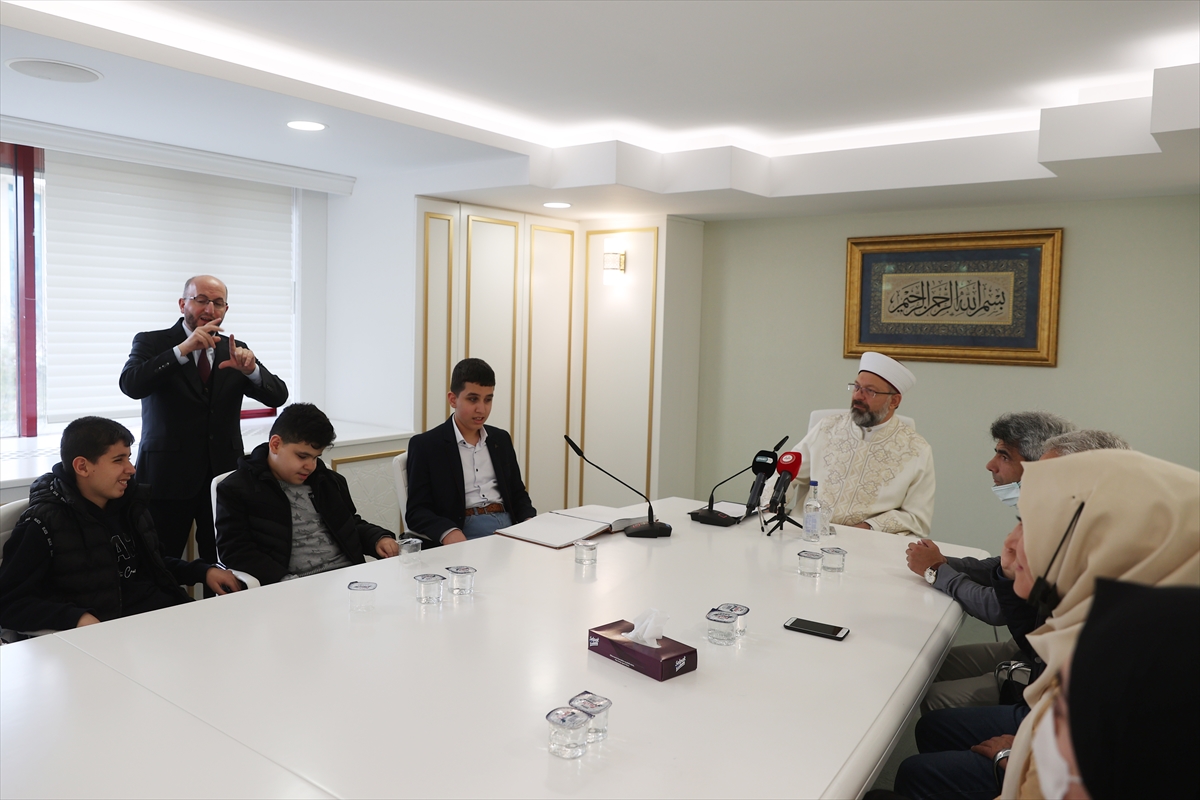 Başkanlıktan yapılan açıklamaya göre Erbaş, "3 Aralık Dünya Engelliler Günü" dolayısıyla Kani Karaca Görme Engelli İmam Hatip Ortaokulu öğrencileri ile Melike Hatun Camisi İşitme Engelliler Kur'an Kursu öğrenci ve velilerini makamında kabul etti.
