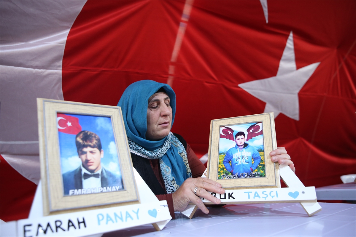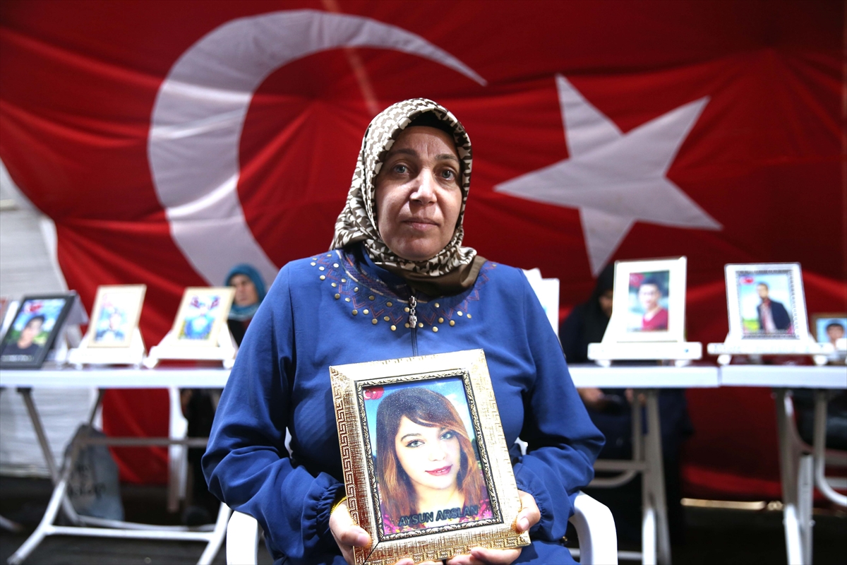 Diyarbakır'ın merkez Sur ilçesinden 5 yıl önce 15 yaşında dağa kaçırılan kızı Aysun için oturma eylemi yapan anne Aydan Arslan, "Yavrumu ve ilk göz ağrımı HDP'den istiyorum. Yıllardır onun hasretini çekiyorum. Artık yeter. Evladımı alana kadar buradan gitmeyeceğim. Gözyaşlarımız artık bitsin." diye konuştu.