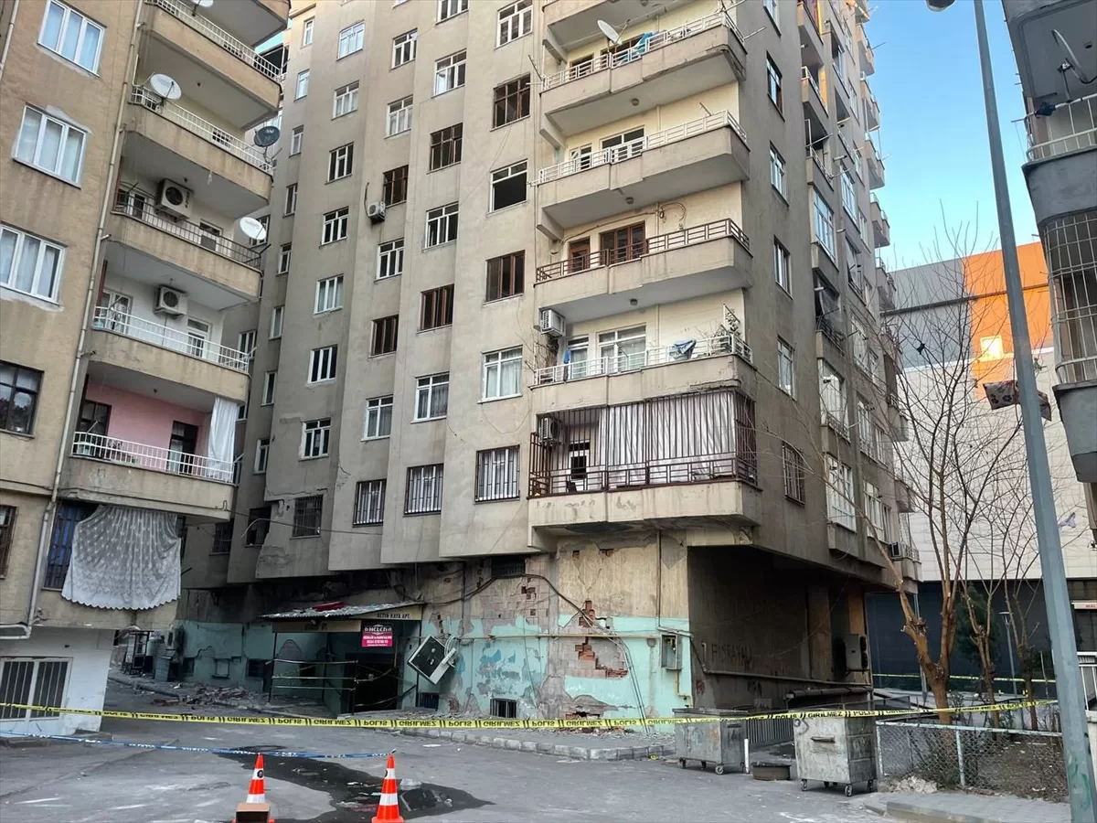 DİYARBAKIR (AA) – Kahramanmaraş merkezli depremlerden etkilenen Diyarbakır'da çökme riski bulunan bir binanın çevresinde güvenlik önlemi alındı.
