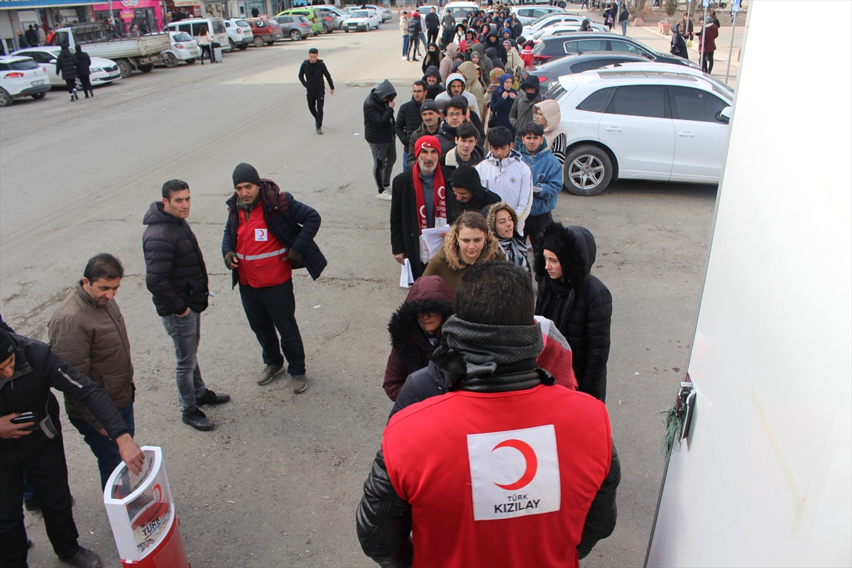 Iğdır'da depremzedeler için Zübeyde Hanım Bulvarı'nda Türk Kızılayın bağış aracı konuşlandı. Sabahın erken saatlerinden itibaren buraya gelen vatandaşlar, kan vermek için uzun kuyruklar oluşturdu.