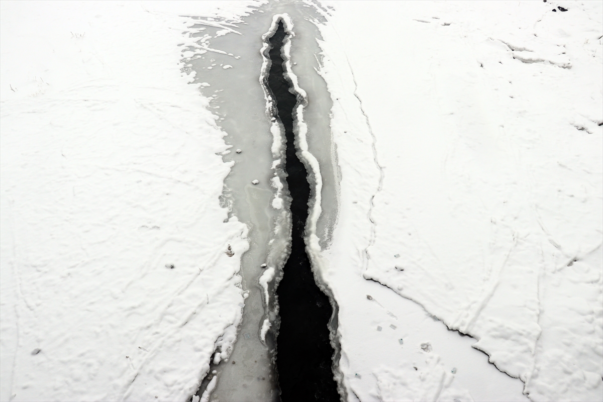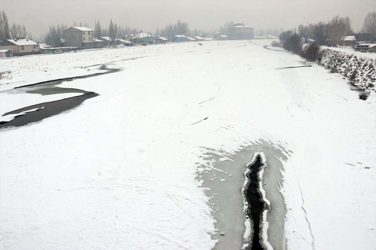 Kars'ta soğukların etkisiyle sulak alanların yüzeyi buzla kaplandı.