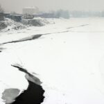 Bina çatılarında buz sarkıtlarının oluştuğu kentte, yeşilbaş ördekler donan bataklıklarda yiyecek ararken görüntülendi.
