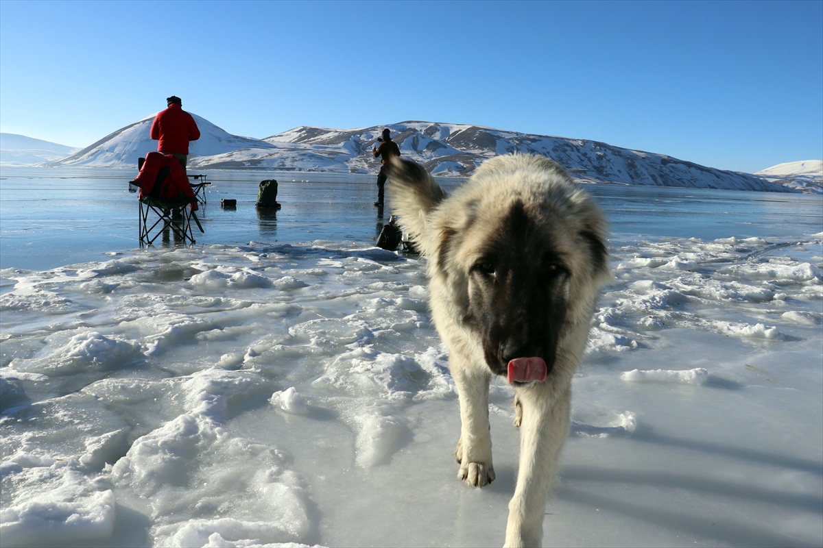 Son günlerde bölgede etkili olan dondurucu soğukların etkisiyle tamamen donan 2 bin 241 rakımdaki göle gelenler buz üzerinde yürüyüş yapıp sandalye ile kayarak eğlenceli zaman geçiriyor.