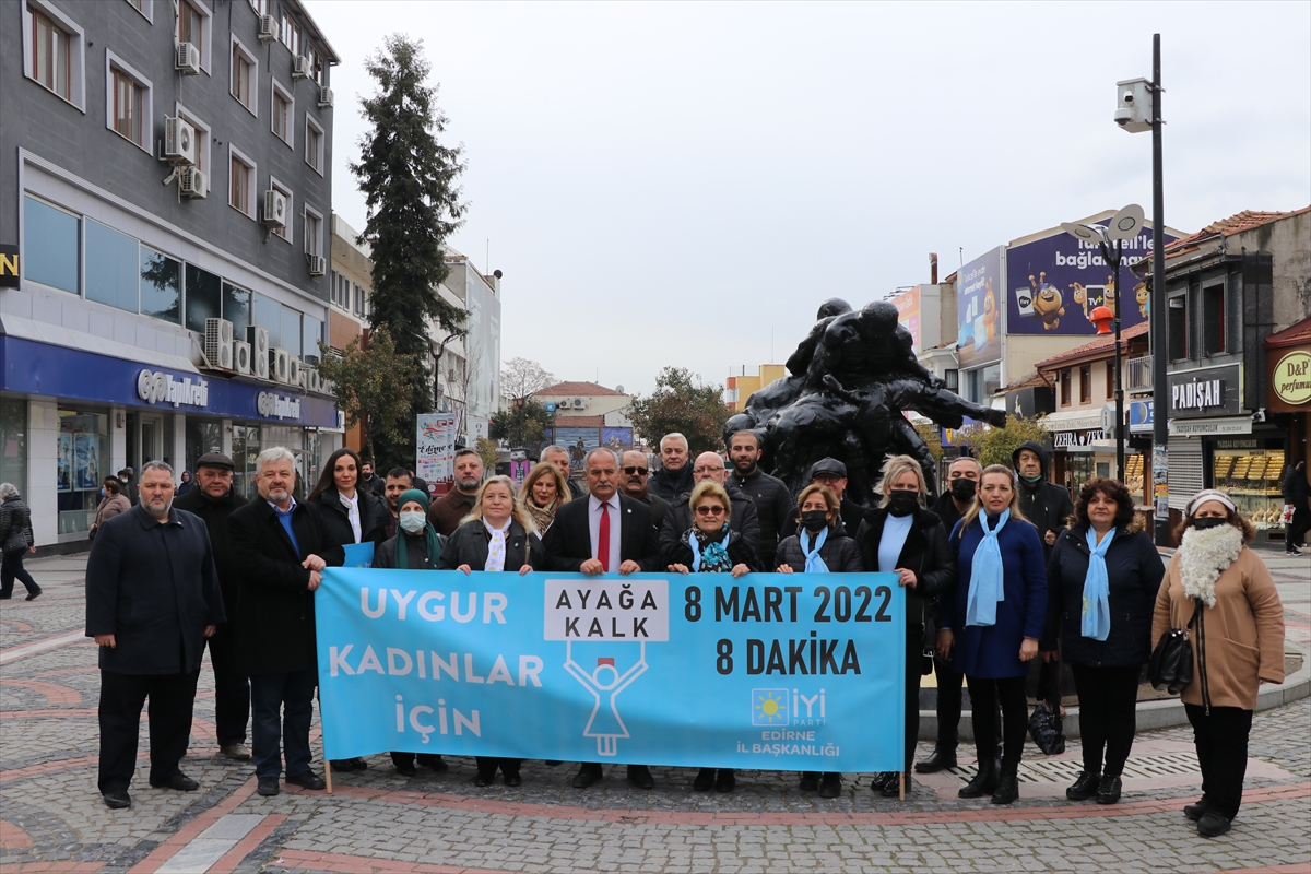 İYİ Parti Edirne İl Başkanlığınca Saraçlar Caddesi'nde düzenlenen etkinlikte Doğu Türkistanlılara yönelik asimilasyon politikası protesto edildi.