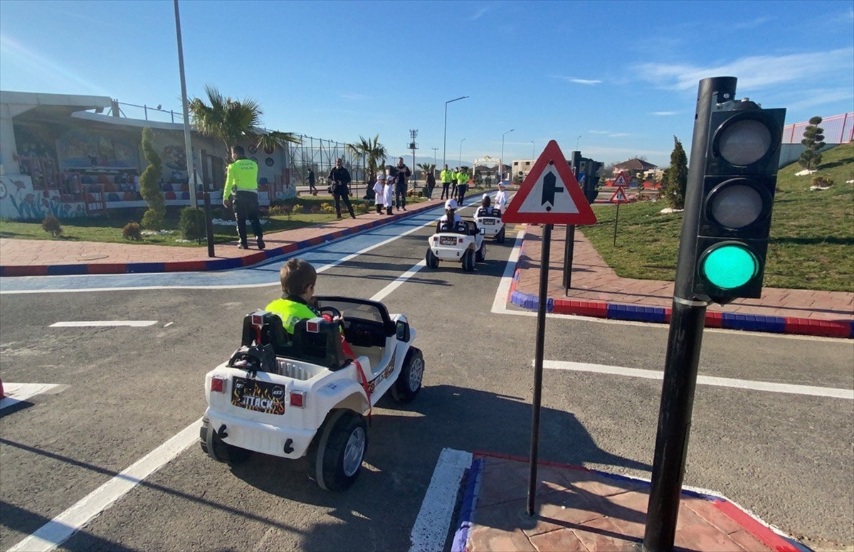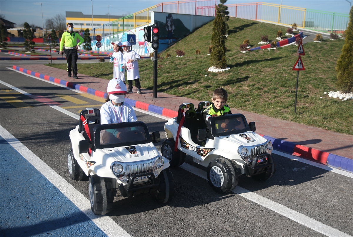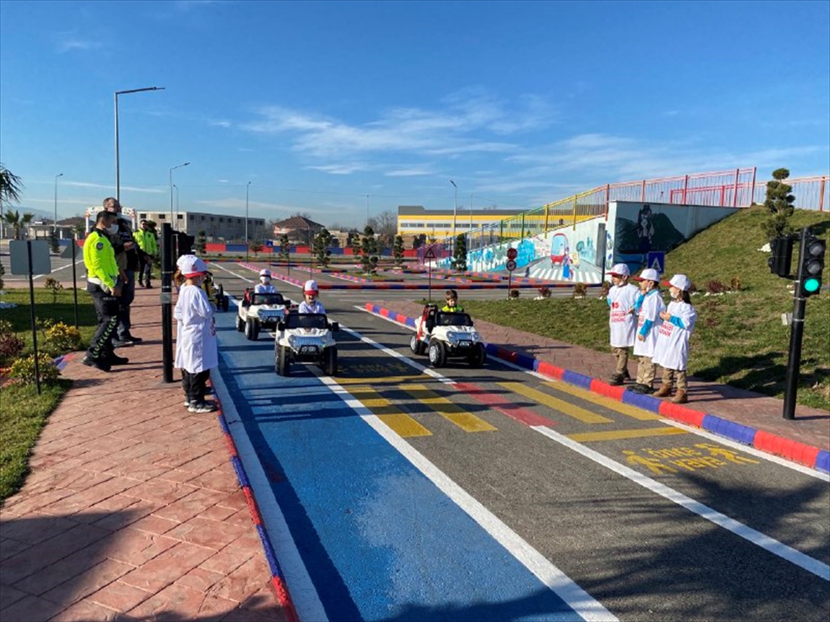 DÜZCE (AA) – Düzce'de emniyet ekipleri, ilkokul öğrencilerine trafik kuralları konusunda bilinç kazandırmak amacıyla parkurda eğitim verdi.