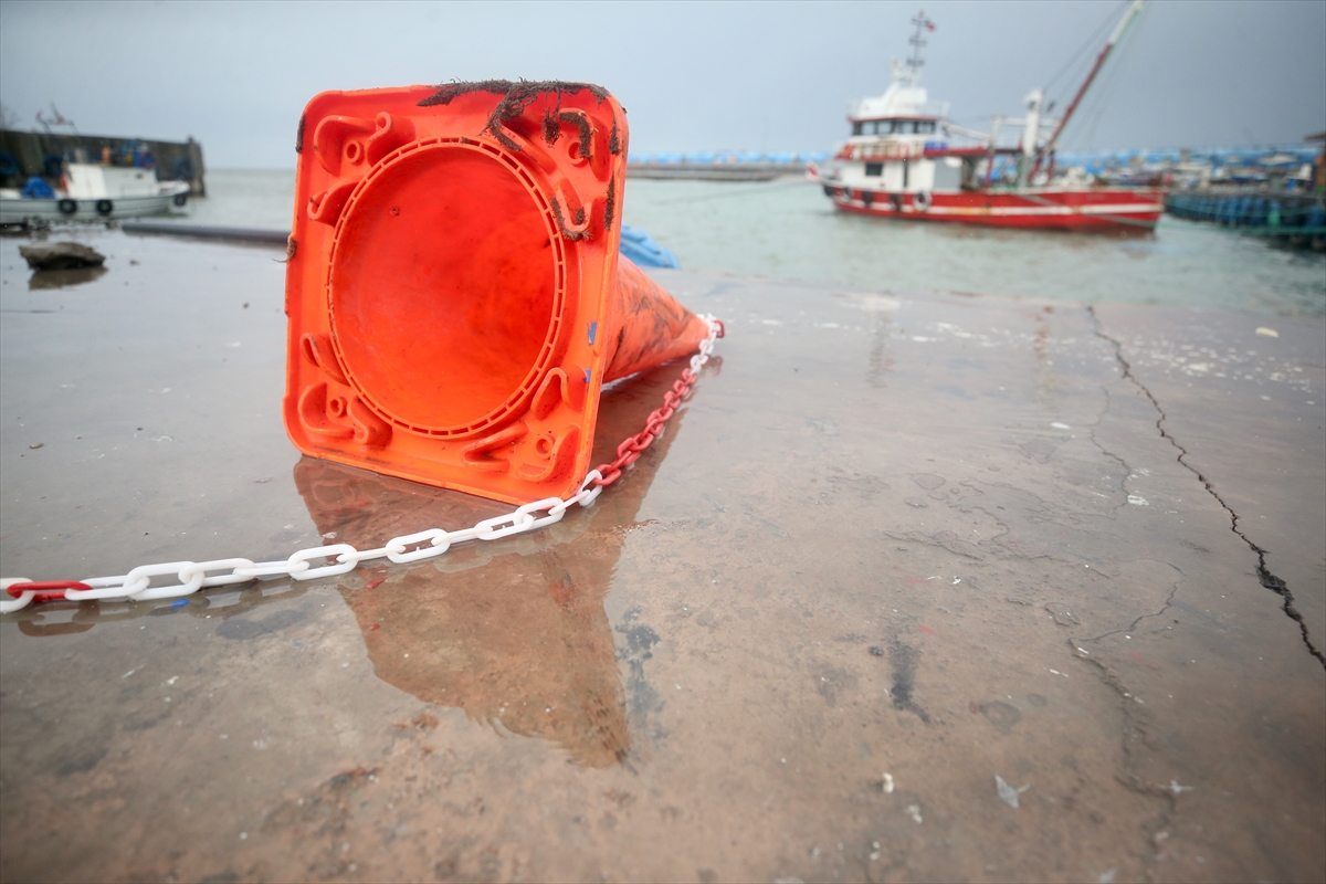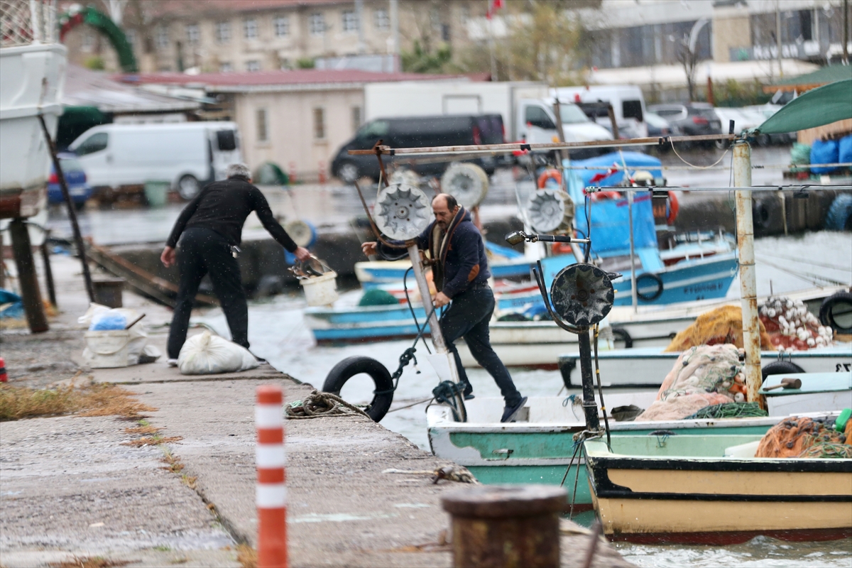 Olumsuz hava koşulları nedeniyle denize açılamayan balıkçılar, teknelerini limandaki güvenli bölgelere çekti, bazı tekneler ise karaya çıkarıldı.