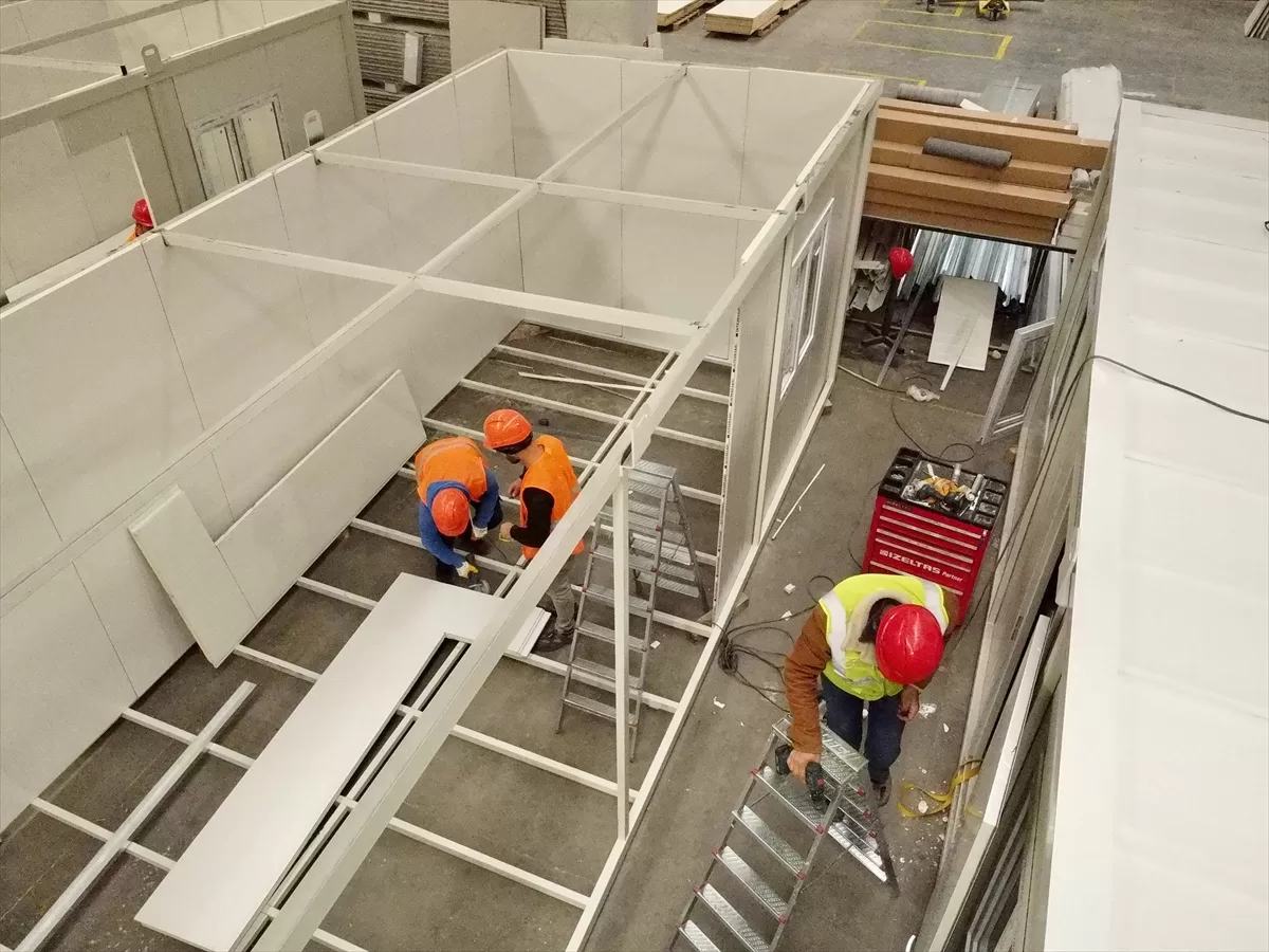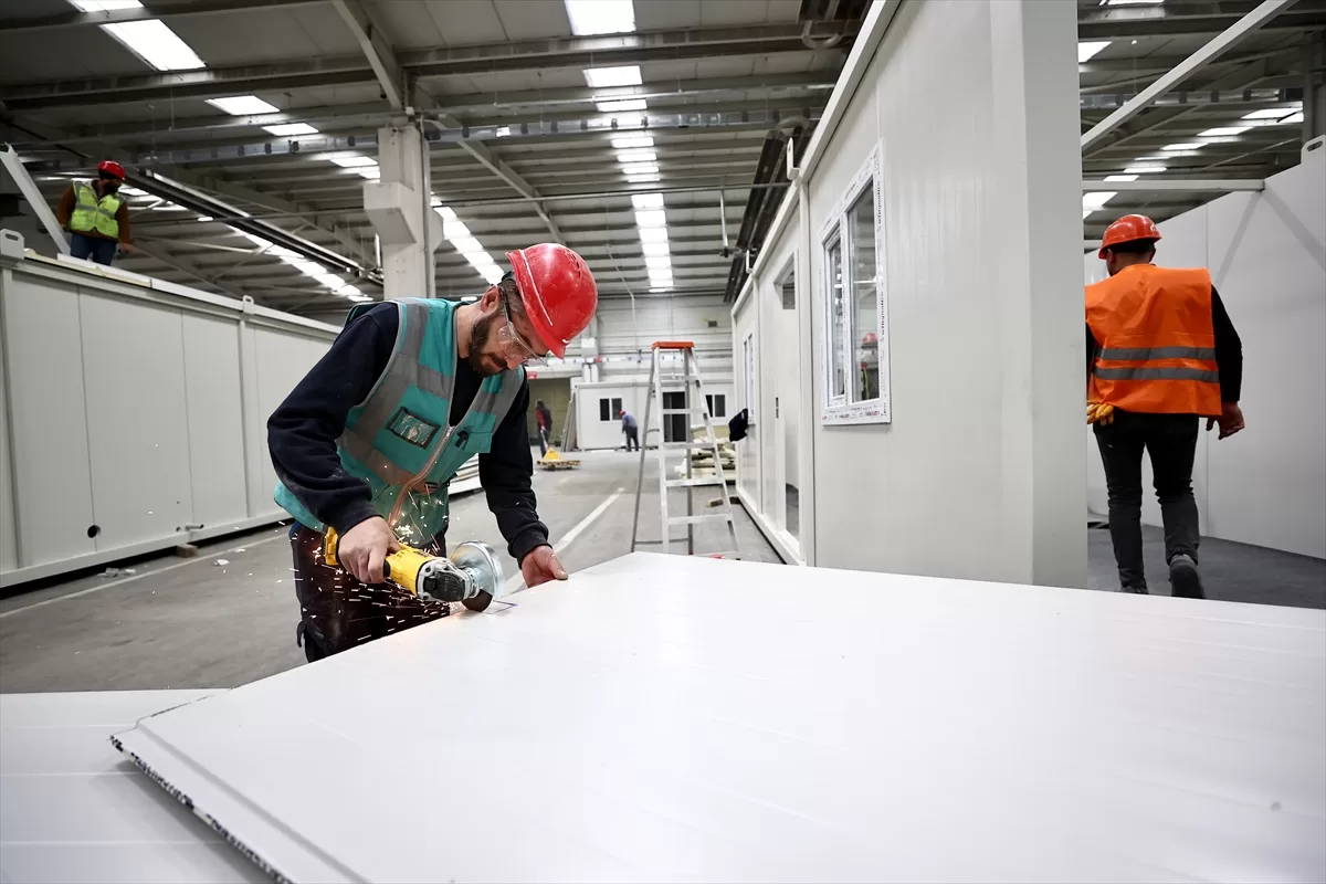 Yanmaz malzemeden üretilen, içinde banyosu ve mutfağı bulunan 35 metrekarelik konteynerlerin günlük üretiminin 100-150 adede çıkarılması hedefleniyor.