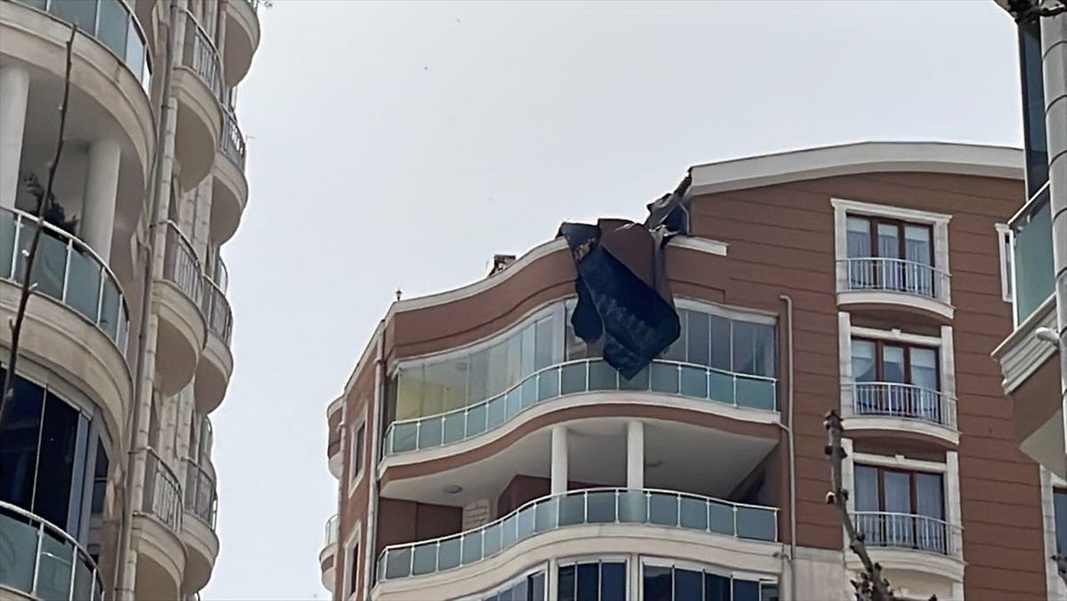 Kuyumcu Bayırı Sokak'taki müstakil bir evin çatısına yanındaki yüksek katlı binanın çatısı uçtu.