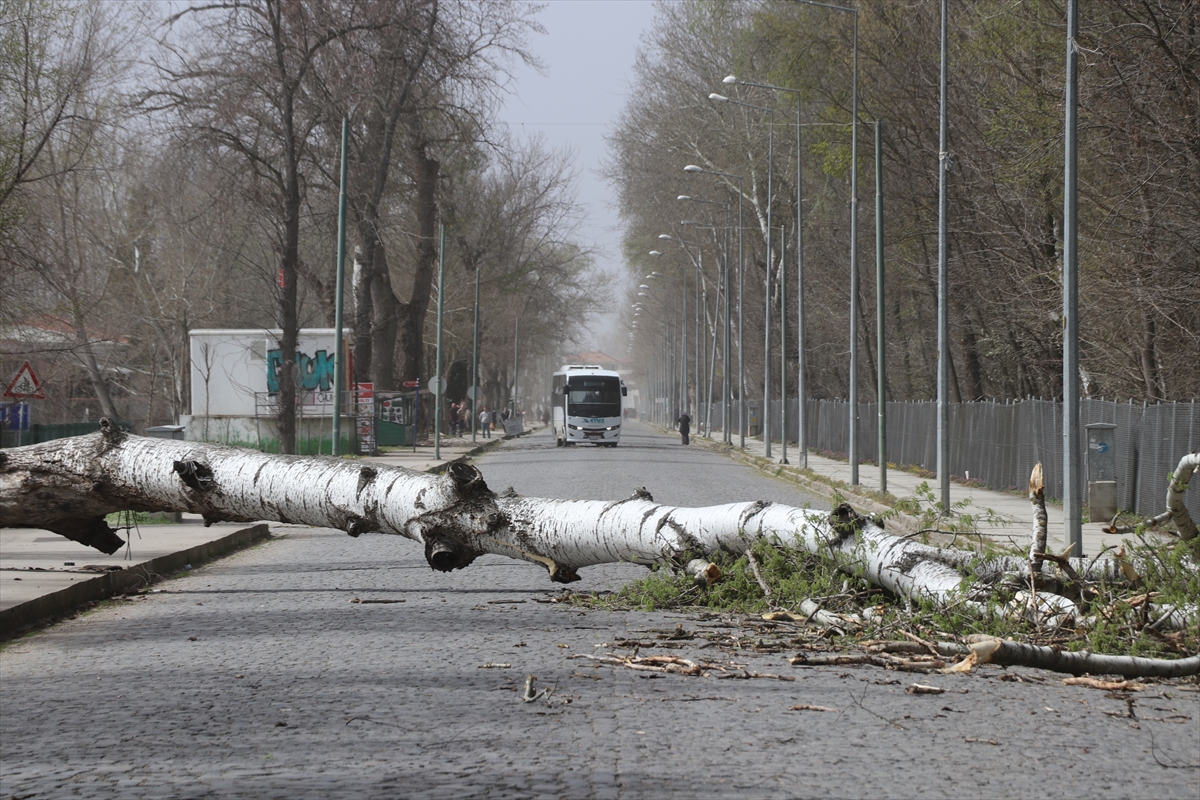 Ancak polis ekipleri rüzgarın şiddetinin dinene kadar etrafı ağaçlarla kaplı Lozan Caddesi'nde trafik akışını durdurdu.