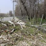 Fırtına kentte pek çok çatının uçmasına ve ağaçların devrilmesine neden oldu.
