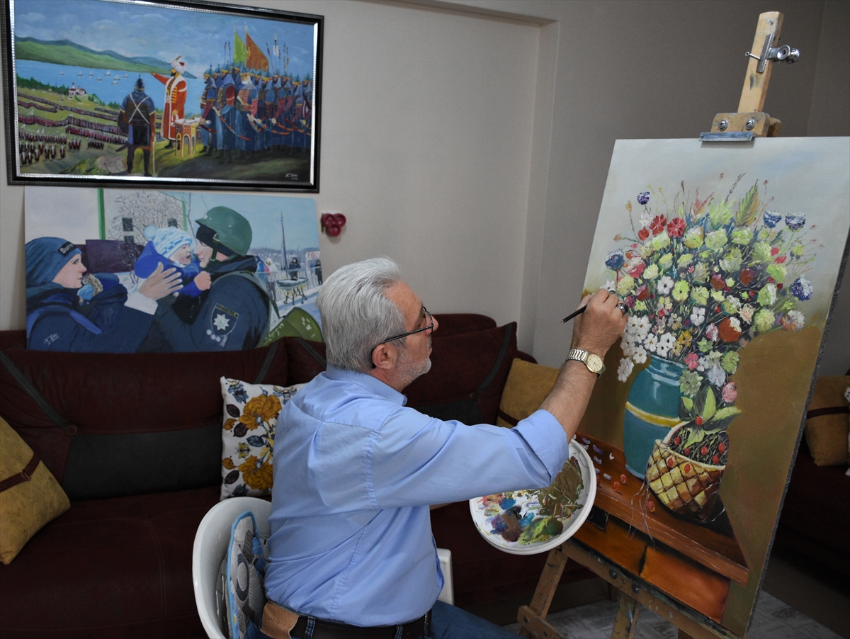 Evinin bir odasını çalışma mekanı haline getiren 55 yaşındaki Nurettin Temiz, AA muhabirine, küçük yaşlardan itibaren, resim yapmanın kendisinde bir tutku haline geldiğini belirterek, "İlkokul, ortaokul ve lise dönemlerimde resim dersim hep 10'du. Herkes bana resim yaptırıyordu." dedi.