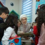 Daha sonra Masal Atölyesi'nde çocuklara, "Nasrettin Hoca ve Cimri Komşusunun Hikayesi" kitabını okuyan Emine Erdoğan, onlarla keyifli zaman geçirdi.