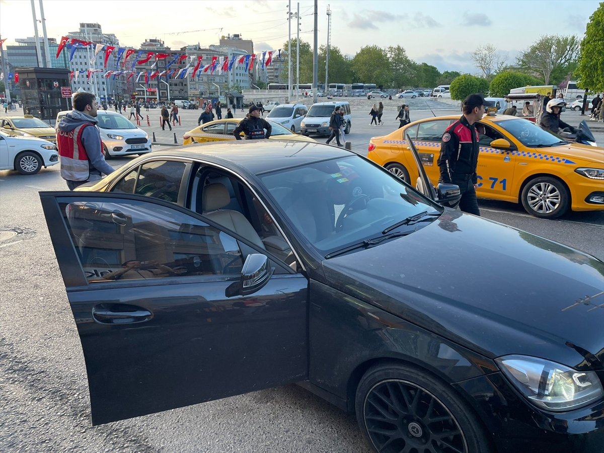 Taksim Meydanı'nda ekipler, araçların iç ve bagaj kısımlarında arama yapıp sürücülerin belgelerini inceledi.