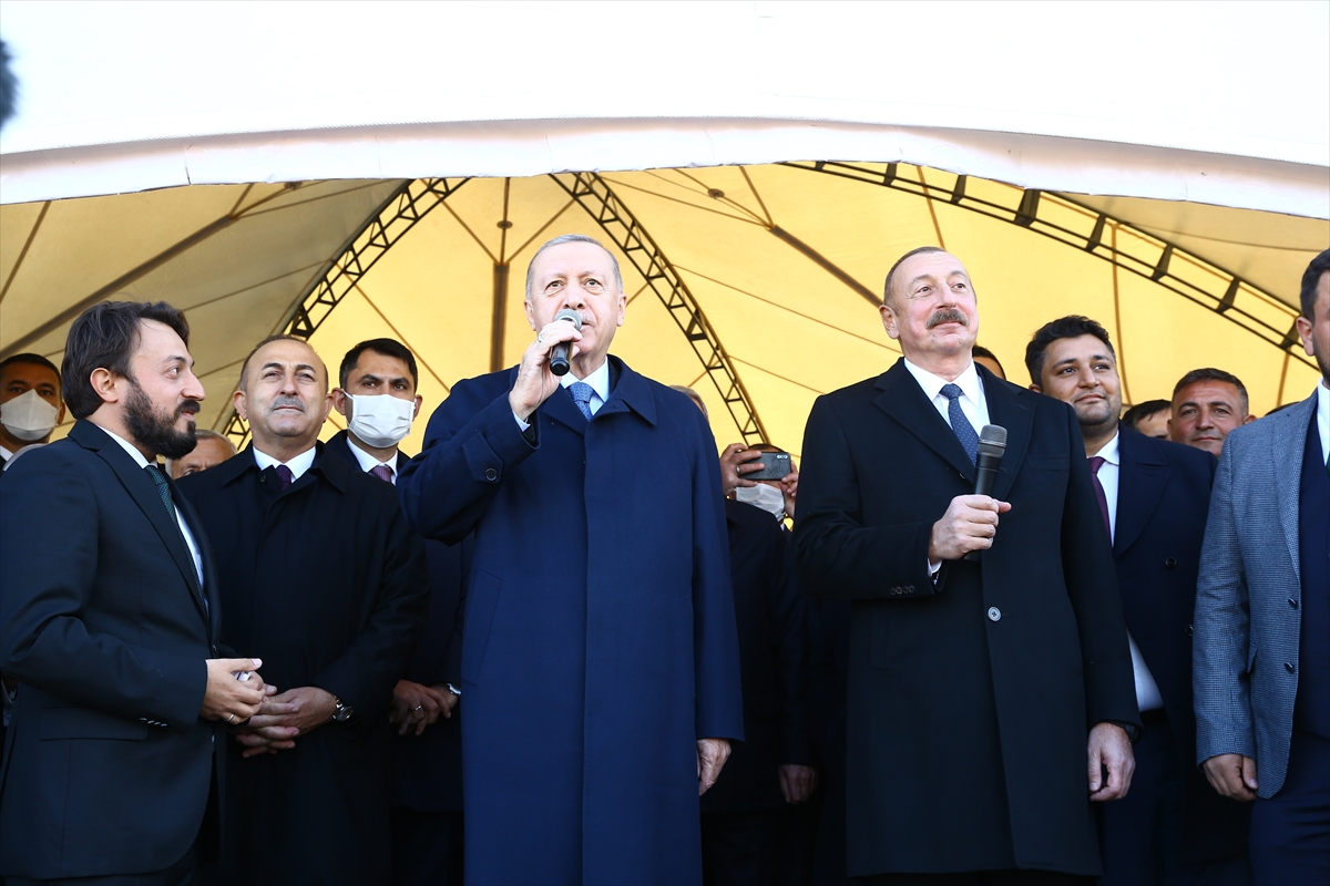 Fuzuli Havalimanı'nın açılışını gerçekleştiren Erdoğan ve Aliyev, Zengilan iline geçerek tarım uygulama alanlarını ziyaret etti.