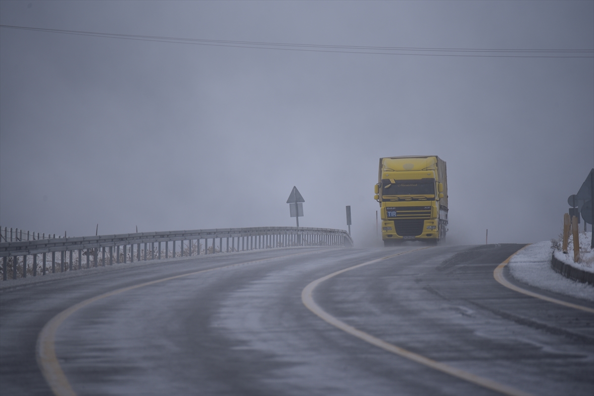 Kars-Digor kara yolunda etkili olan kar ve sis sürücülere zor anlar yaşattı.